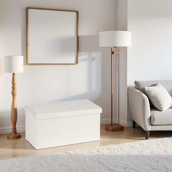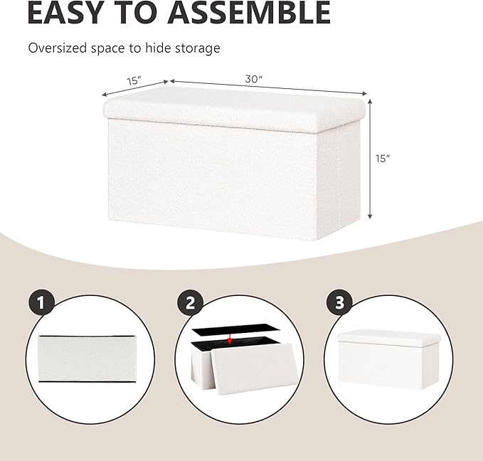 30.1" Storage Ottoman Bench - Foldable Foot Rest Stool Bedroom Bench for Living Room, Entryway-White