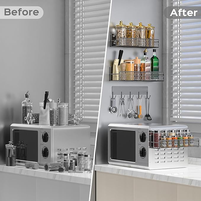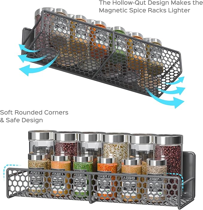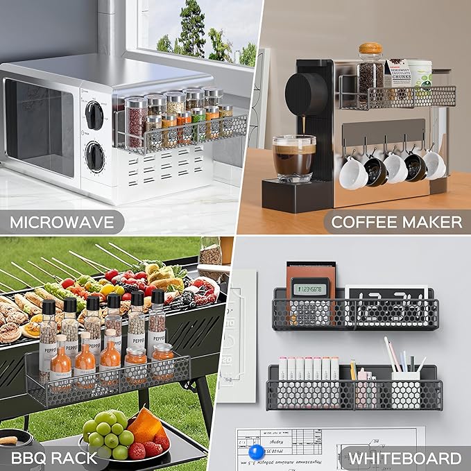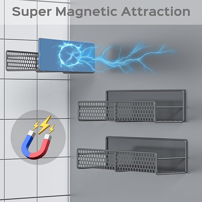 - Durable Magnetic Storage for Daily Use: Crafted from anti-rust, thickened metal, these magnetic shelves are built to last. With a strong load capacity and Hollow Design, they handle daily use in high-moisture laundry rooms and busy kitchens. Perfect as a heavy duty magnetic shelf for long-term laundry room organization and fridge storage.