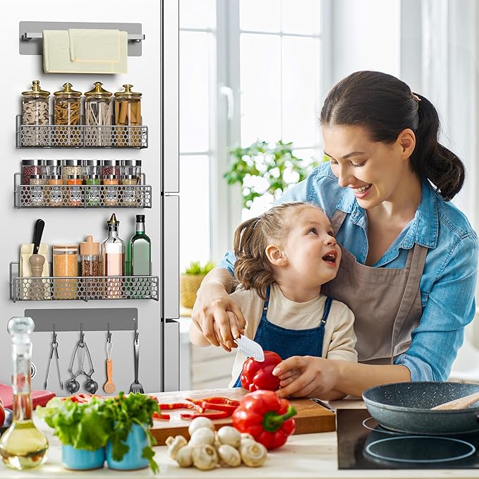 - Magnetic Fridge Shelf & Spice Rack: Turn your fridge side into an orderly space with these magnetic fridge shelves! Store spices, condiments, and small essentials—no more cluttered countertops. The sleek design works as a magnetic spice rack for refrigerator, keeping cooking necessities handy. Note: Not suitable for paper towels.