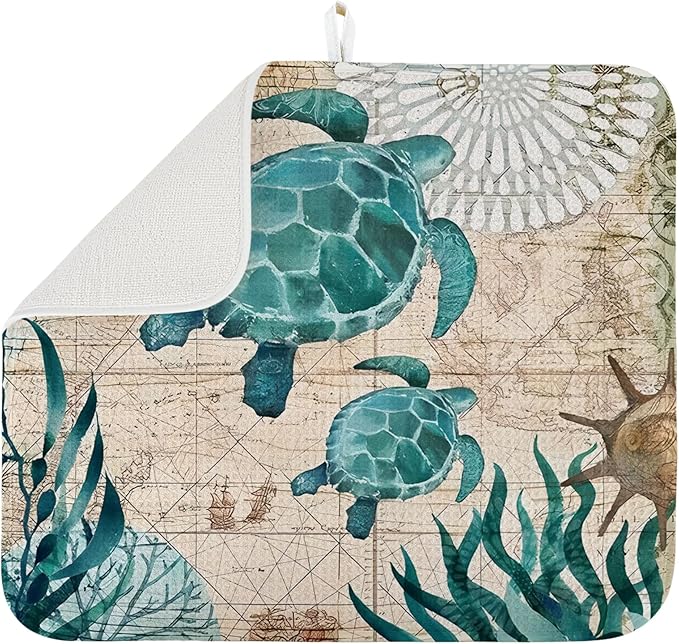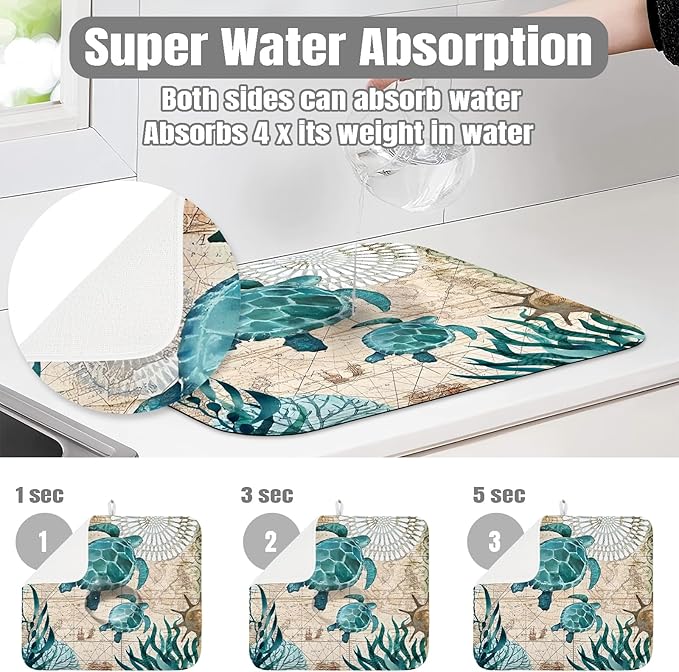 Dish Drying Mat for Kitchen Counter Large 16" x 18" Seaturtle Absorbent Microfiber Dishes Drainer Rack Mats Pad Reusable Washable