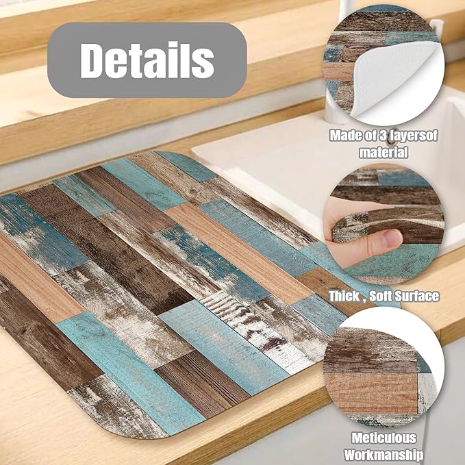 Dish Drying Mat for Kitchen Counter Large 18" x 24" Farmhouse Rustic Wood Absorbent Microfiber Dishes Drainer Rack Mats Pad Reusable Washable
