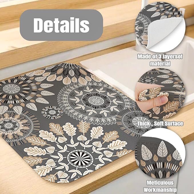 Dish Drying Mat for Kitchen Counter Large 18" x 24" Mandala Absorbent Microfiber Dishes Drainer Rack Mats Pad Reusable Washable