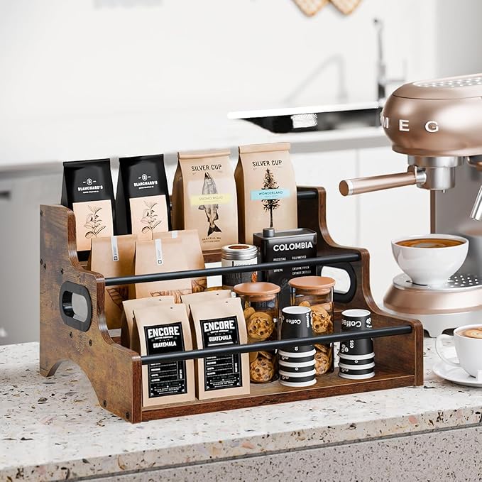 - [Durable Iron & MDF Construction]Crafted from sturdy iron frames and MDF shelves, this spice rack offers long-lasting durability. The robust build supports heavy bottles without wobbling, ensuring stability and resistance to daily wear, ideal for busy kitchens.