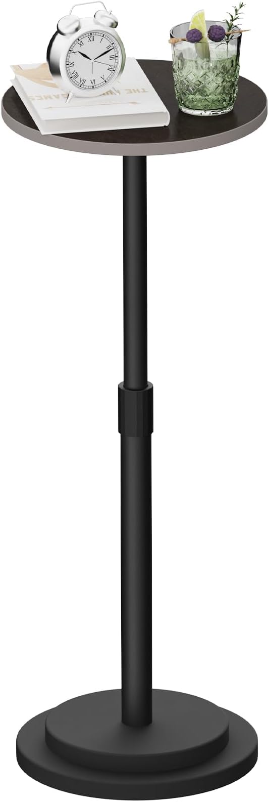 Height Adjustable Drink Table, Vintage Round Indoor Metal Plant Stand, for Small Spaces, Living Room, Bedroom, Cocktail, 1 Pack, Dark Brown, GBZ001CZ-1