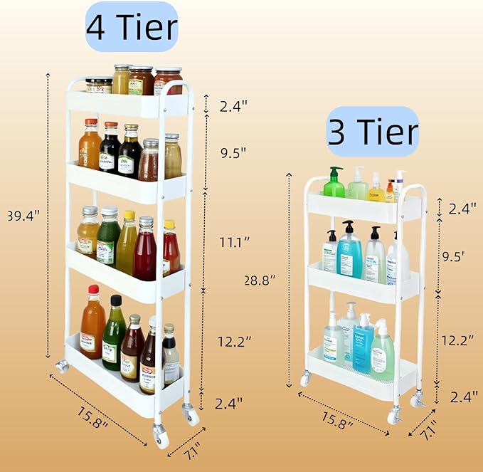 - 【Durable and Stable】Upgrade to metal frame with this narrow rolling cart. Unlike traditional flimsy plastic organizers cart, our slim storage shelf is more durable and stable. When you use it, you don't have to worry about warping or rusting at all