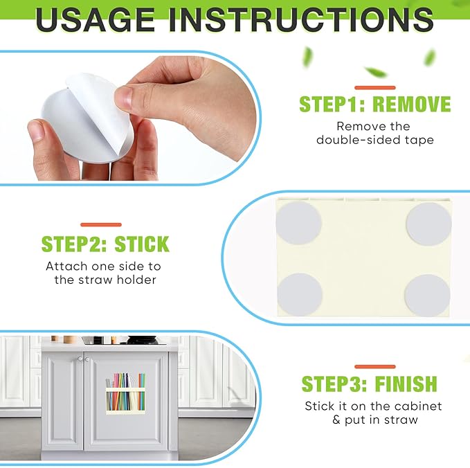 - Complete Package for Easy Installation: the package includes 1 acrylic straw holder and 4 pieces of double sided adhesive tapes (straw not include); The tapes provide a secure and stable setup, ensuring the straw holder stay securely even in busy areas; The outer layer of the product has a plastic film and auxiliary tape; The plastic film needs to be torn off before use; The tape is applied to assist in fixing the product and can also be torn off without affecting the stability of the product