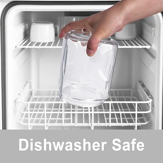 - 🧇 【Sturdy Base & Durable Glass Construction】Reinforced flat base prevents tipping on countertops or shelves, while thick glass resists scratches, odors, and stains. Safe for dishwasher fridge, and freezer