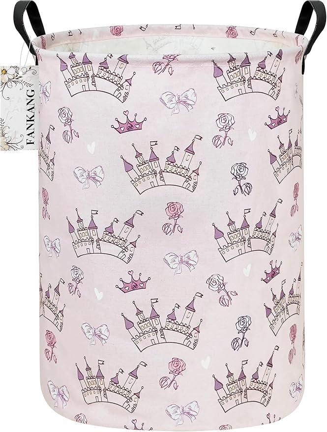FANKANG Storage Basket, Nursery Hamper Canvas Laundry Basket Foldable with Waterproof PE Coating Large Storage Baskets for Kids Boys and Girls, Office, Bedroom, Clothes,Toys(Princess Castle)