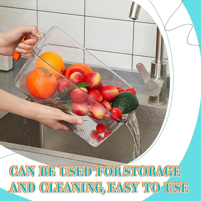 Havawish 2 Set Ice Bin and Flexible Scoop Set Plastic Freezer Ice Bin with Pull out Handle Clear Storage Bucket for Container with Bucket Scoop(Orange,10.83 x 7 x 4.33 in,10.83 x 4.92 x 4.33 in)
