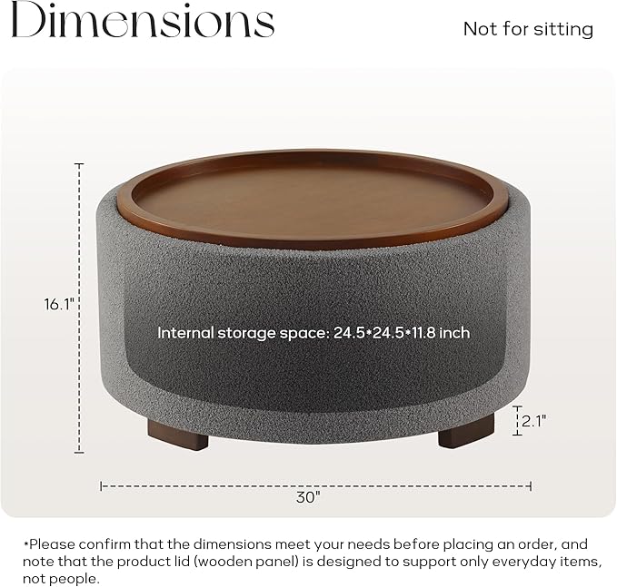 - Stylish and Modern Design: The 30-inch round storage ottoman features a contemporary boucle fabric upholstery, adding a chic touch to any living room, bedroom, or apartment