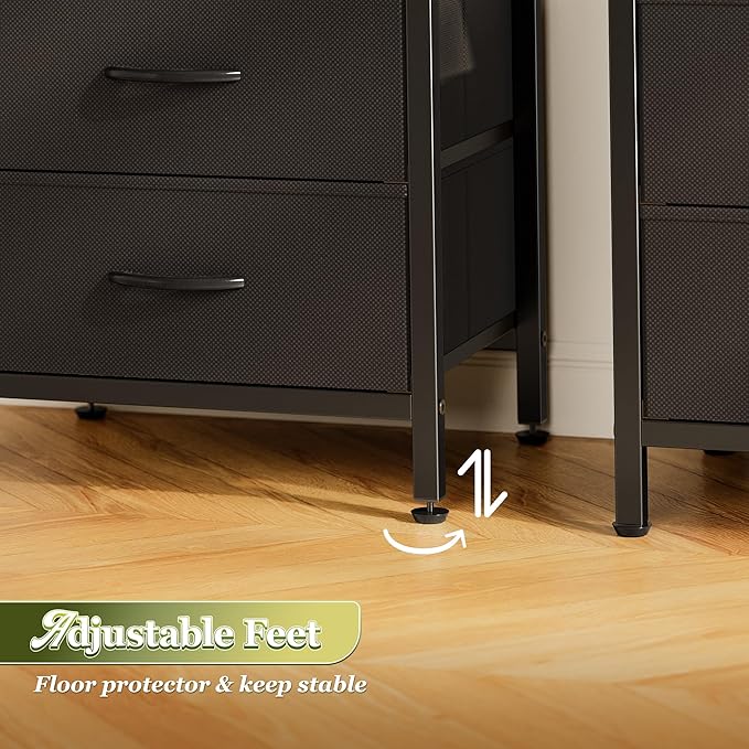 - 【Sturdy & Reliable】Built with a strong steel frame and durable P2-grade particleboard, this bedroom nightstand supports your daily use with ease. Adjustable feet keep it stable on any surface, from hardwood to carpet