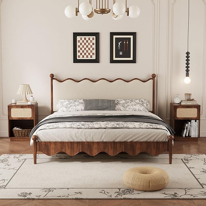 - The Art of Bedside Table Placement: Nights tands with linen decor drawers and shelf as bedside tables are both functional and decorative. The function part is when you use Walnnut nightstand set of 2 as storage for important intimate belongings and the decorative part is when you use two side tables on both sides of the bed for symmetry. They are considered very visible and can have a major effect on the room’s aesthetics and style.