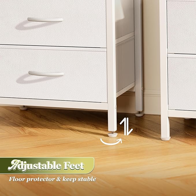 - 【Sturdy & Reliable】Built with a strong steel frame and durable P2-grade particleboard, this bedroom nightstand supports your daily use with ease. Adjustable feet keep it stable on any surface, from hardwood to carpet