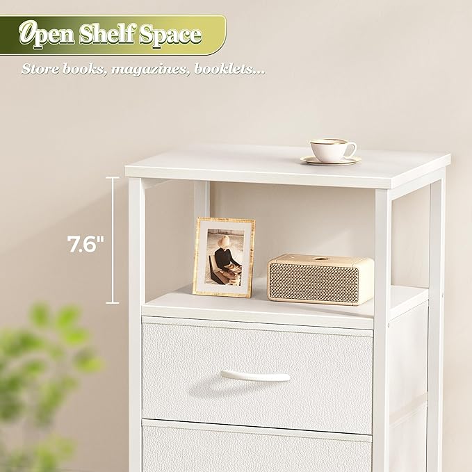- 【Nightstand with 2 Drawers】2 spacious fabric drawers and an open shelf help you organize nighttime essentials, books, glasses, remotes, and more, all within easy reach. Enjoy a cleaner, calmer space with this bedside table