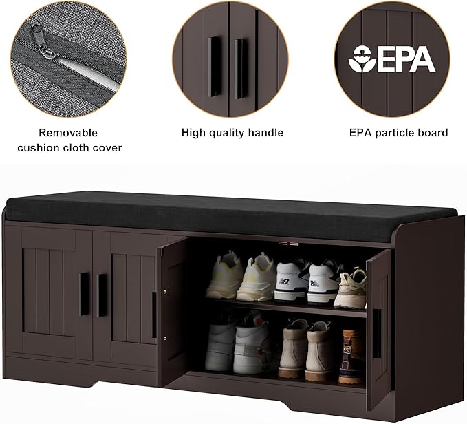 - More Comfortable Shoe Change Cabinet: With a 2-inch thickened padded sponge cushion on the bench top, you can change shoes by sitting on the bench more comfortable without bending down or squatting