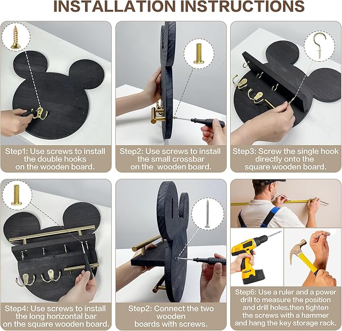- EASY TO INSTALL KEY HANGER: There are several different screws in the product. You can install them in the corresponding positions with a screwdriver according to the instructions on the product picture, then drill holes on the wall,then you can hang the key holder. It only takes 15-30 minutes to install.