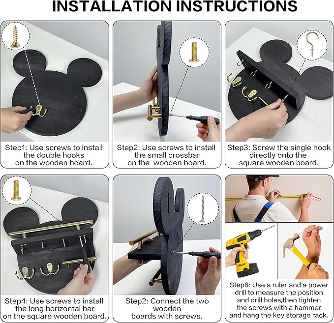 - EASY TO INSTALL KEY HANGER: There are several different screws in the product. You can install them in the corresponding positions with a screwdriver according to the instructions on the product picture, then drill holes on the wall,then you can hang the key holder. It only takes 15-30 minutes to install.