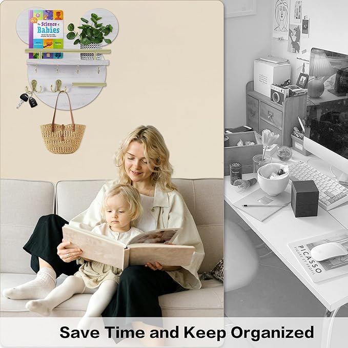 - UPGRADED HOOKS:Our key rack has more hooks-Mail slot*1,Key hook*4,Sunglasses hanging*1,Double hooks*2, Designed for ultimate versatility, these heavy-duty hooks keep your space organized wherever you need them. Hang keys and bags in the entryway, coats and scarves at the office, or robes and towels in the bedroom—effortlessly transforming any wall into a clutter-free storage solution.