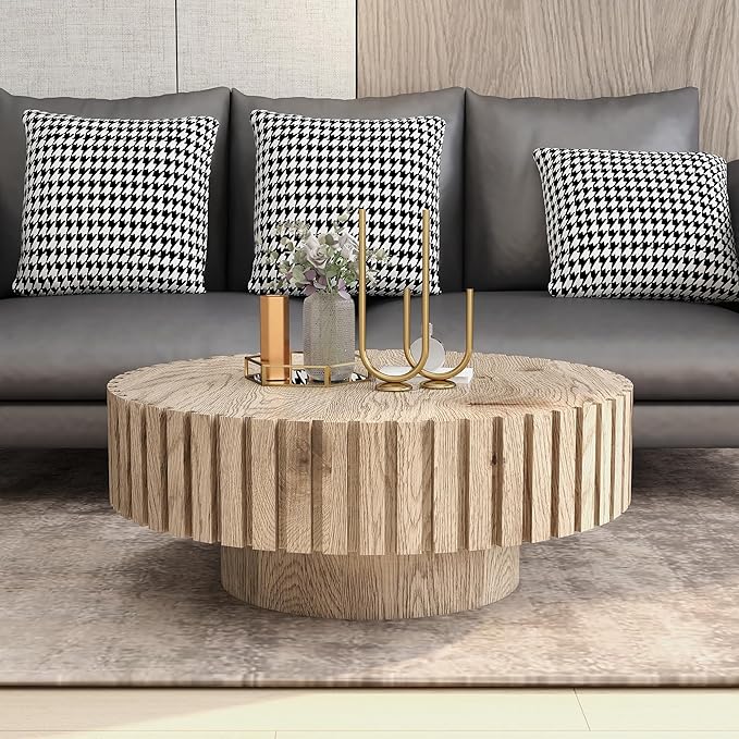 - Sturdy Construction: This modern round coffee table is made of high-quality MDF which has excellent stability and durability. The pedestal design not only ensures durability but also adds a distinctive element to the coffee table's overall look