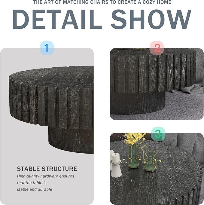 - Sturdy Construction: This black modern coffee table is made of high-quality MDF which has excellent stability and durability. The pedestal design not only ensures durability but also adds a distinctive element to the coffee table's overall look