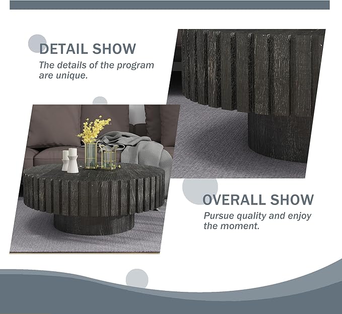 - Simple Assembly: The size of the circular coffee table is 31.5L x 31.5W x 13.8H Inches. We enclosed all the tools and instruction needed to help you finish assemble this coffee table easily