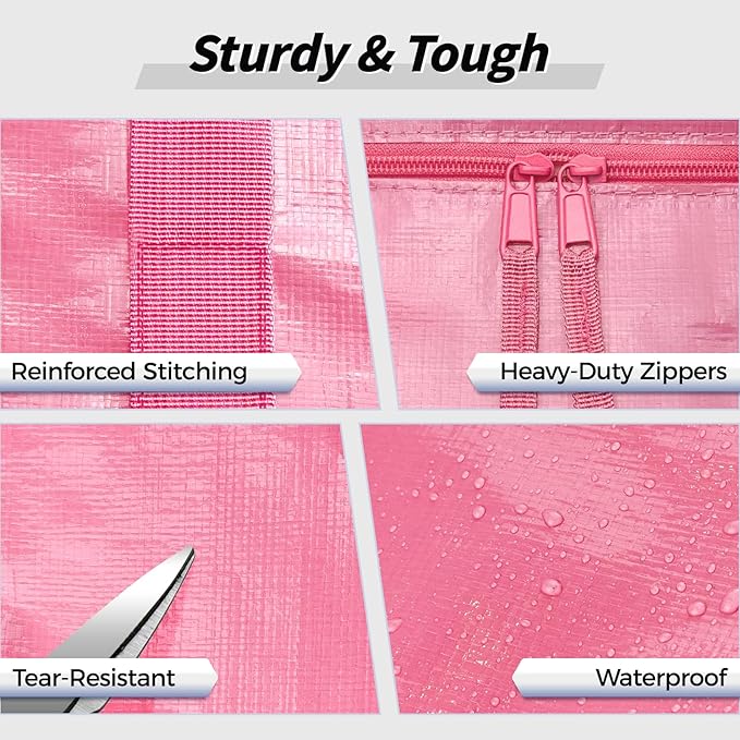 16 Pack Extra Large Heavy Duty Moving Bags, Pink Storage Bins with Lids, Reinforced Handles & Heavy-Duty Zippers Moving Boxes Storage Bags Totes for Clothes Packing, Dorms, College Supplies, Pink