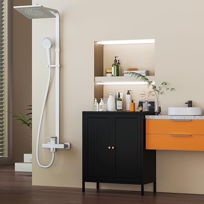 - MULTIPURPOSE BATHROOM CABINET: The metal storage cabinet is versatile and can be used in home, office, kitchen, bathroom and living room, you can use it in the dining room or kitchen, metal storage cabinet in the entryway, bookcase in the office or bathroom cabinet in the laundry room