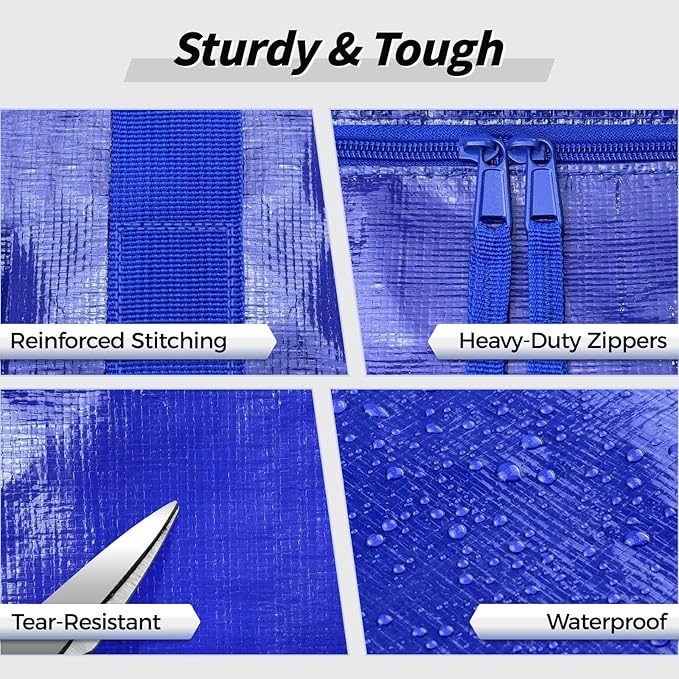 8 Pack Extra Large Heavy Duty Moving Bags, Blue Storage Bins with Lids, Reinforced Handles & Heavy-Duty Zippers Moving Boxes Storage Bags Totes for Clothes Packing, Dorms, College Supplies, Blue
