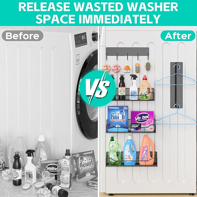 - ✅【Strong Magnetic Force & Super Load-bearing】Our magnetic shelves uses high-performance magnets that firmly adhere to any metal surface without displacement. With excellent load-bearing capacity, it can safely carry a variety of detergents and kitchen supplies, and it remains stable when the washing machine is in operation. No drilling or complicated installation process is required. Add more harmony and convenience to your family life!