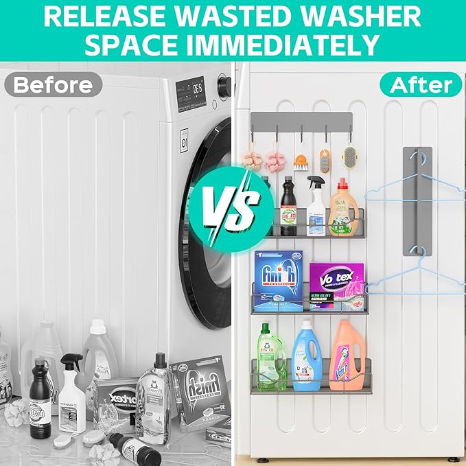 - ✅【Strong Magnetic Force & Super Load-bearing】Our magnetic shelves uses high-performance magnets that firmly adhere to any metal surface without displacement. With excellent load-bearing capacity, it can safely carry a variety of detergents and kitchen supplies, and it remains stable when the washing machine is in operation. No drilling or complicated installation process is required. Add more harmony and convenience to your family life!