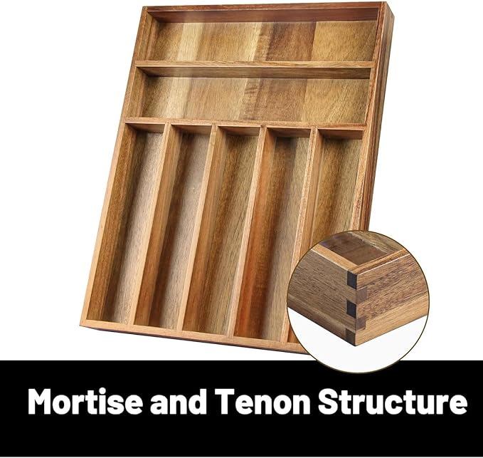 - 【Natural Acacia Wood】: Crafted from natural acacia wood, this silverware drawer organizer not only offers long-lasting durability but also adds a touch of warmth to your kitchen with its unique grain and color.