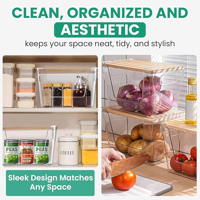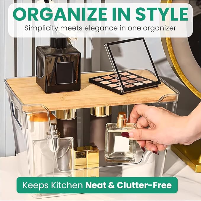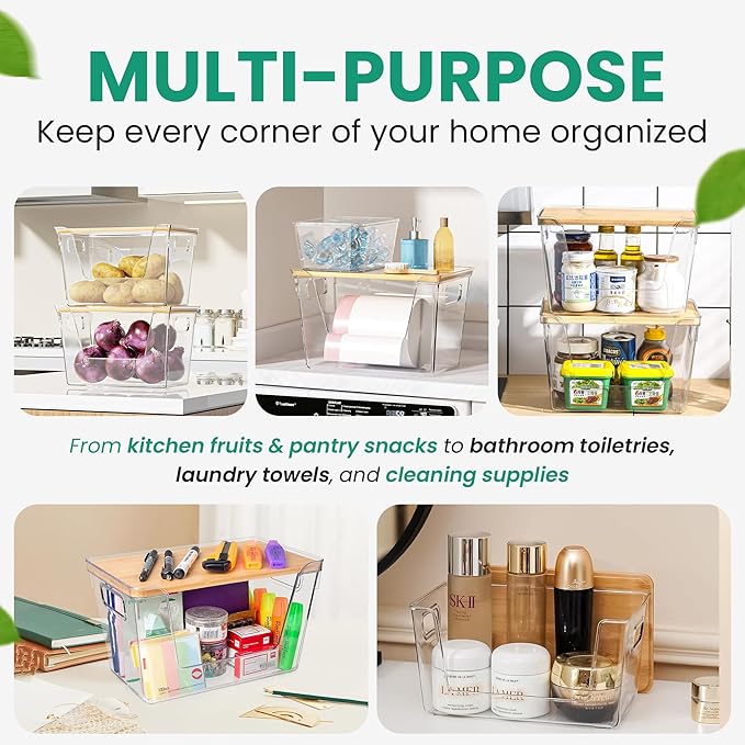 2 Pack Extra Large Trash Bag Holder Dispenser with Bamboo Lid ā Stackable Design & Easy-Dispense Slot with Side Handles, Garbage Bag Dispenser for Pantry and Under-Sink Storage (11.4 Ć 7.1 Ć 7.1 in)