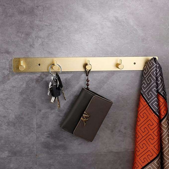 - Wall Mount Hook: Gold hook rack is more sturdy to use by drilling in, suitable for holding keys, towels, Wallet, bath towel, washcloth, brush, towel, scissors, cell phone cord.