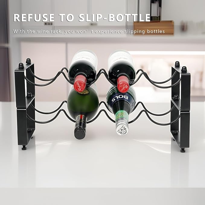- 【KEEP YOUR WINE FRESH】Wave-shaped shelves with an arc design and solid construction interlock at each connection point, preventing wobbling, tilting, or falling, ensuring stability and keeping corks moisturized for freshness