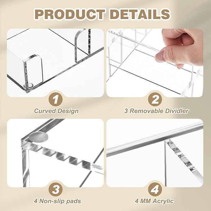 - Stylish Appearance: our acrylic tray organizer is crafted from acrylic; This lends it a stylish appearance and durability, allowing it to seamlessly blend into any decor while withstanding regular use without easily getting damaged or losing its charm