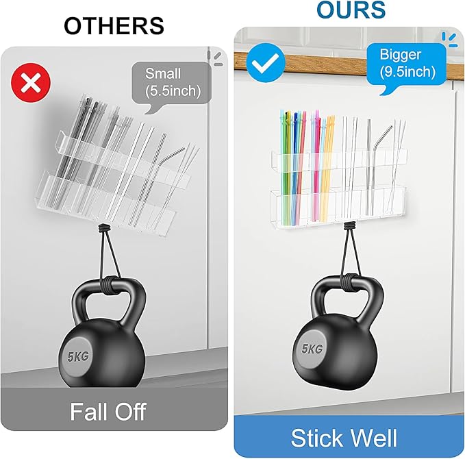 - ๐ฆ๐ฝ๐ถ๐ฐ๐ฒ ๐ฆ๐ฎ๐๐ถ๐ป๐ด - The straw holder is suitable for a large number of straws without requiring too much space. Its space-saving design allows it to be easily installed on cabinet doors or countertops without taking up too much space.