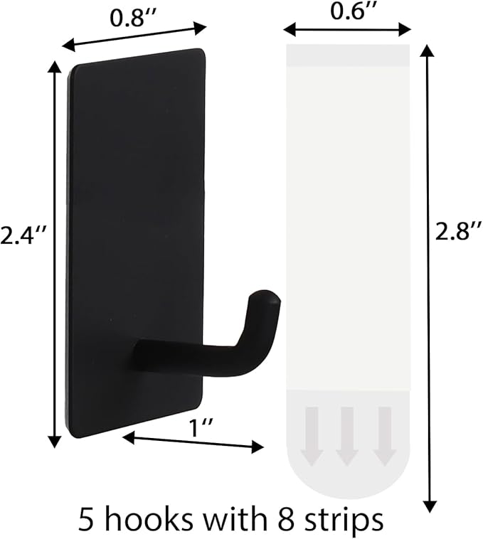 - High Loading Capacity:5 Medium heavy duty SUS-304 stainless steel hooks with 8strips maximum hold 3 lbs
