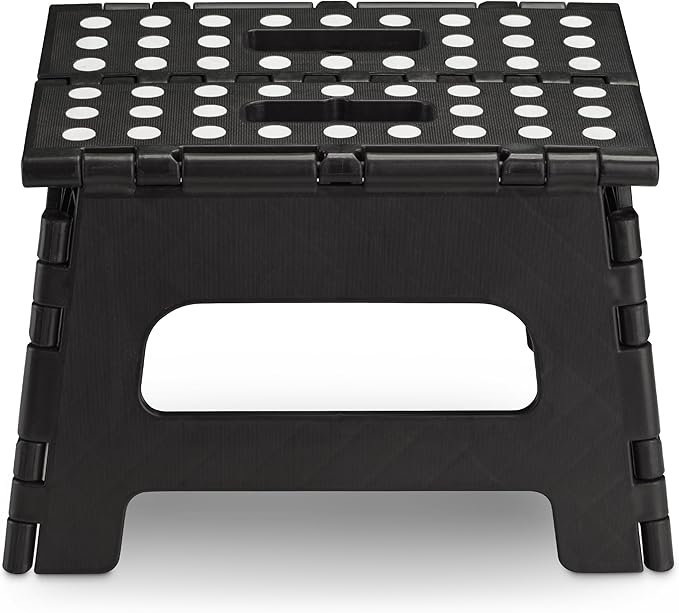 Handy Laundry - Folding Step Stool - Sturdy Enough Collapsible Stool to Support Adults and Safe Enough for Kids - Opens Easy with One Flip - Great for Kitchen, Bathroom or Bedroom (Black - 8 Inch)