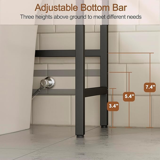 - Adjustable Feet for Stability – Equipped with adjustable feet, the toilet storage rack stands steady on uneven floors, protecting tiles and keeping balance.