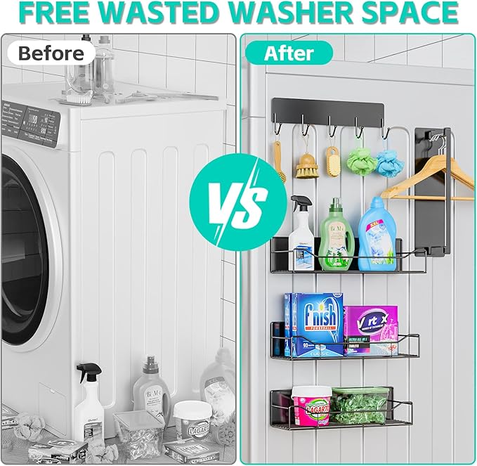 - ✅【Strong Magnetic Force & Super Load-bearing】Our magnetic shelves uses high-performance magnets that firmly adhere to any metal surface without displacement. With excellent load-bearing capacity, it can safely carry a variety of detergents and kitchen supplies, and it remains stable when the washing machine is in operation. No drilling or complicated installation process is required. Add more harmony and convenience to your family life!