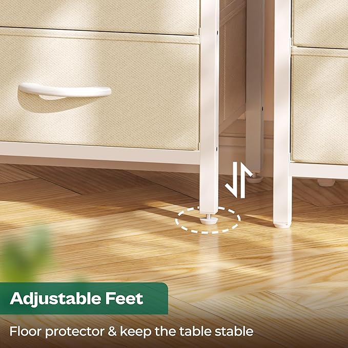 - 【Solid Structure】Crafted with P2 particle board, reinforced by a robust powder-coated steel frame, 2 durable non-woven fabric drawers, and balanced by 4 adjustable feet, this side tables living room will serve a long time
