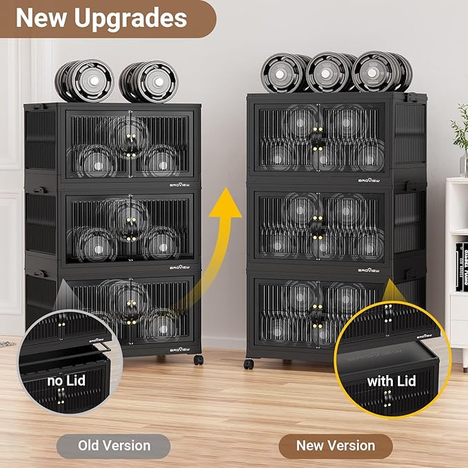 - 【5 Mins Easy Assembly & Warm Tips】The stackable storage bins open front only take 5 minutes to assemble the entire storage cabinet. Thanks to the foldable and stackable design, Broview v8 stackable storage bins can be disassembled and folded at any time when not in use. Warm Tips: Currently only 120QT black come with multi Lid, other need to be purchased separately.