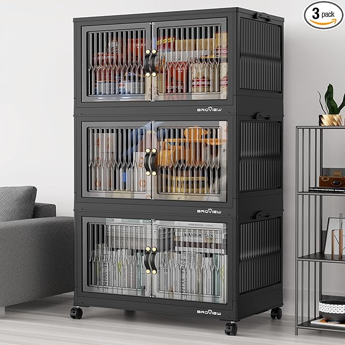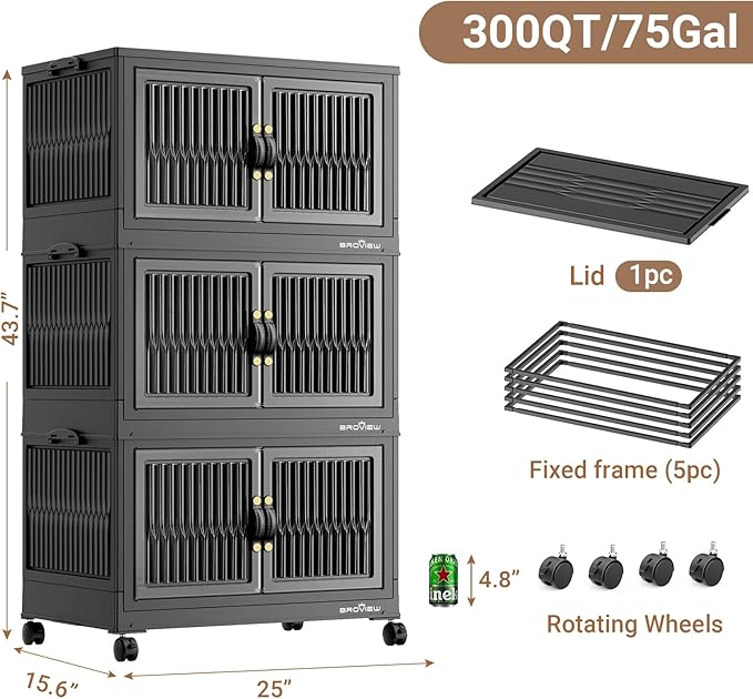 - 【5 Mins Easy Assembly & Warm Tips】The stackable storage bins open front only take 5 minutes to assemble the entire storage cabinet. Thanks to the foldable and stackable design, Broview v8 stackable storage bins can be disassembled and folded at any time when not in use. Warm Tips: Currently only 120QT black come with multi Lid, other need to be purchased separately.