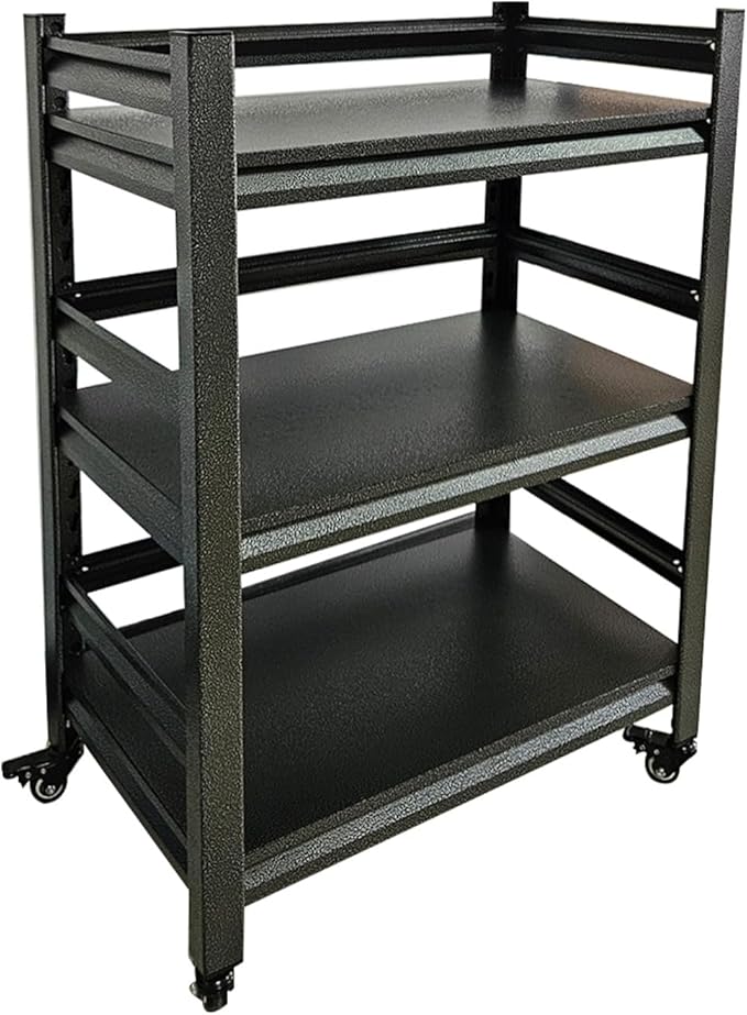 3 Tier Garage Storage Shelves,Heavy-Duty Unit with Wheels,Easy to Assemble Adjustable Metal Garage Shelving for Kitchen Warehouse Tool Room(Size:60cmX40cmX80cm)