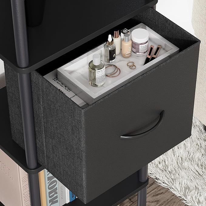 - Sturdy & Durable : This 6-Tier Storage Shelf Organizer with Drawer is made of a sturdy metal frame and durable particleboard,with a maximum load capacity of 30 pounds, which can provide maximum protection for the safety of collections and books. And this Ladder shelf with storage drawers is equipped with 4 adjustable feet and a sharp-proof kit.