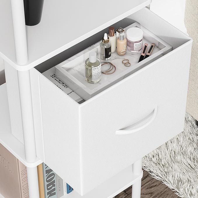 - Sturdy & Durable : This 6-Tier Storage Shelf Organizer with Drawer is made of a sturdy metal frame and durable particleboard,with a maximum load capacity of 30 pounds, which can provide maximum protection for the safety of collections and books. And this Ladder shelf with storage drawers is equipped with 4 adjustable feet and a sharp-proof kit.