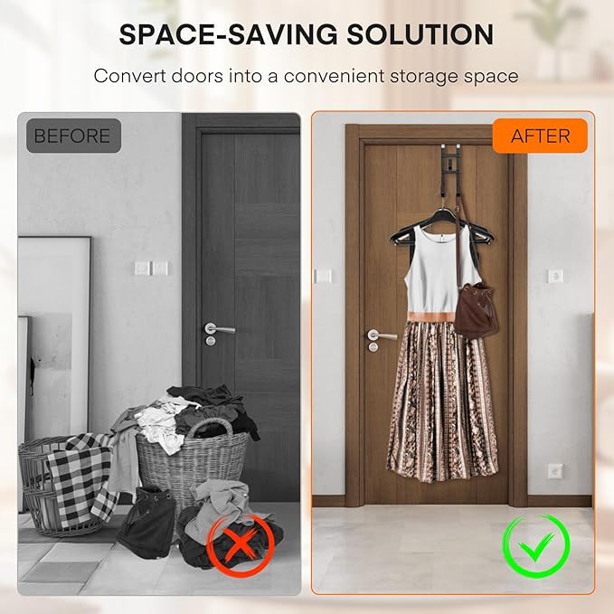 - Smart Triple-Hook & Stable Design: The door hanger hooks design with Triple-Hooks, create more hanging space. It also crafted with 2 stabilizer, prevent tilting when unevenly loaded, allow the door to close without obstruction