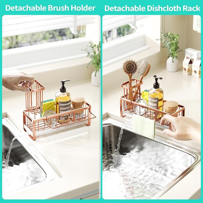 - [Detachable Brush Holder]: HapiRm sponge holder also comes with a removable brush holder, creating a dedicated spot for your dishwashing brushes. This sink caddy ensures a tidy kitchen and makes your cleaning tasks more efficient and organized