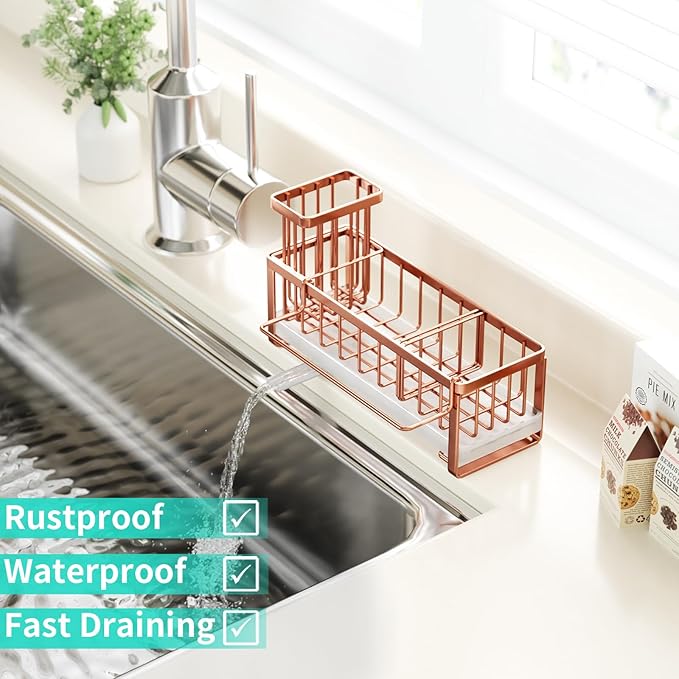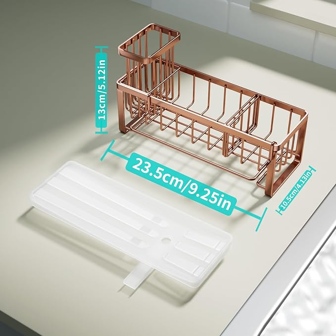 - [Reasonable Size & Support]: The size of our sink organizer is 9.25*4.13*5.12 inches. Our sponge caddy for kitchen sink can meet your daily needs well. If you are not satisfied with this sink caddy kitchen sink organizer, please reach out to us