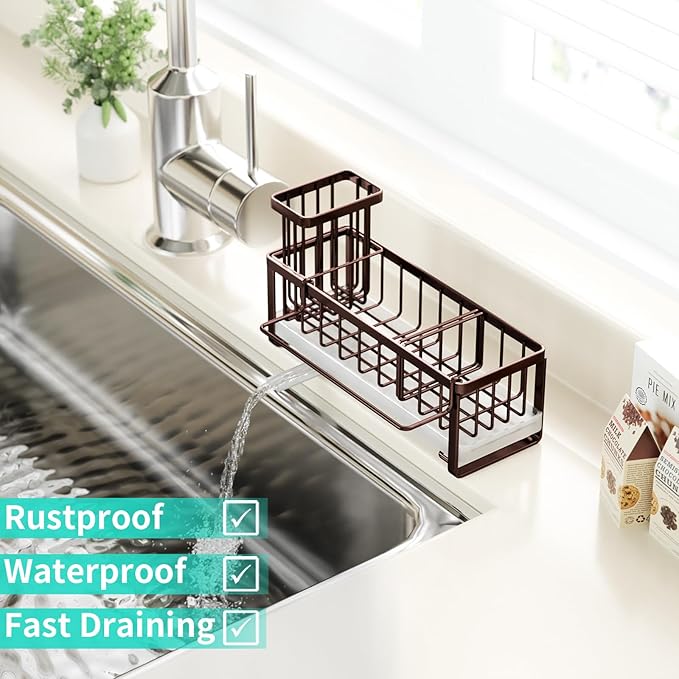 - [Reasonable Size & Support]: The size of our sink organizer is 9.25*4.13*5.12 inches. Our sponge caddy for kitchen sink can meet your daily needs well. If you are not satisfied with this sink caddy kitchen sink organizer, please reach out to us